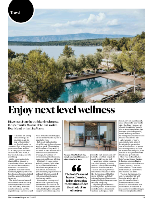 The Scotsman – September 2025 “Enjoy next level wellness on Hvar Island”